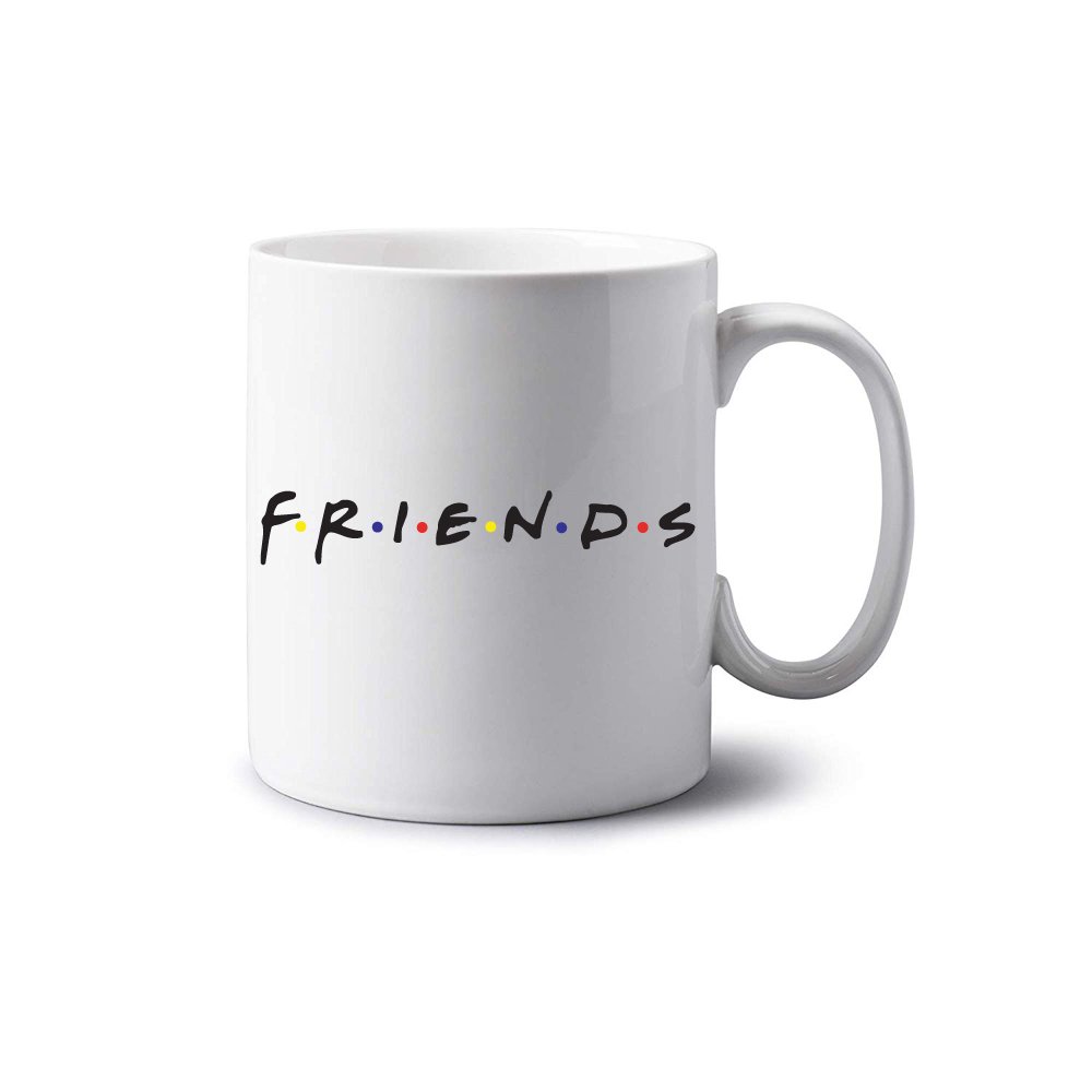 Taza de cerámica con el logo de la serie “Friends” en serigrafía.